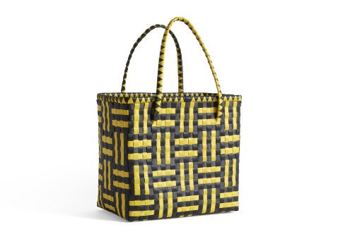 Сумка Maxim от Bertjan Pot, сделанная вручную из переработанных пластиковых полос, представляет собой красочную сумку с характерным рисунком бревенчатой хижины. Прочная тканая конструкция и оригинальный дизайн делают сумку функциональным и модным аксессуаром для покупок и переноски вещей, а также дл..